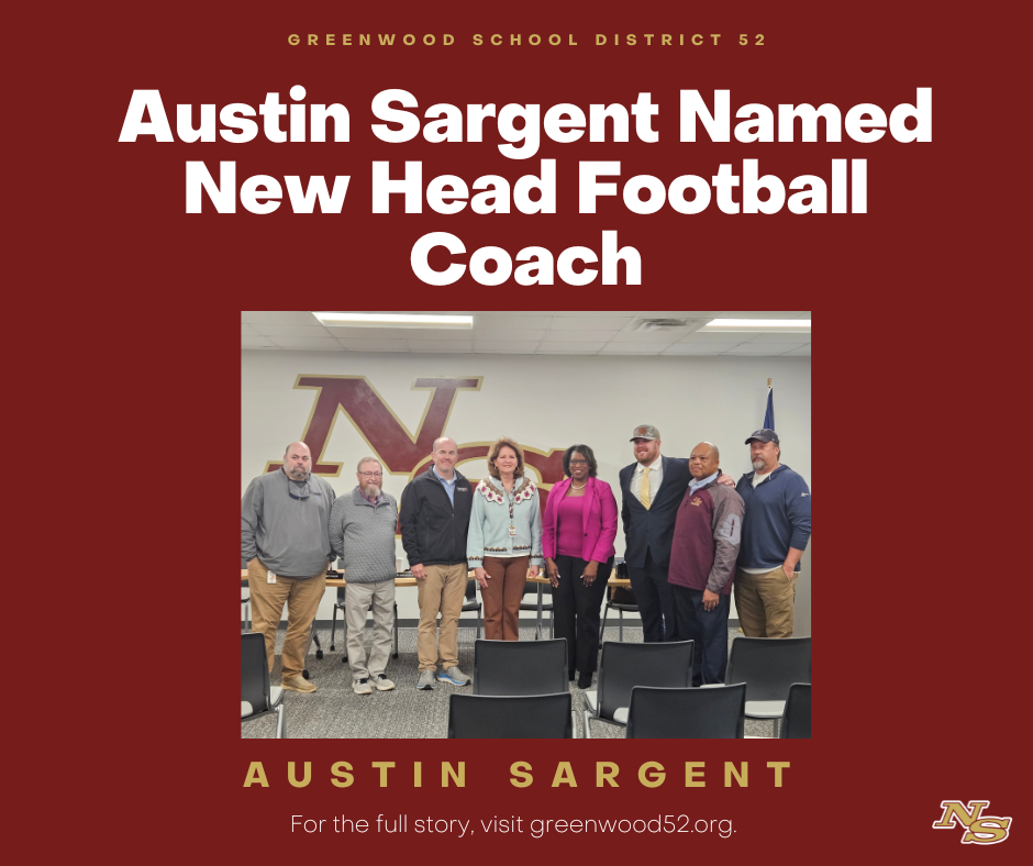 Superintendent Dr. Beth Taylor said, “Austin Sargent brings the knowledge, character, and professional experience to continue moving our football program in a positive direction. His familiarity and roots within our community are an added bonus. We have complete confidence that his hard work and dedication will result in excellence on and off the playing field for our student-athletes.”