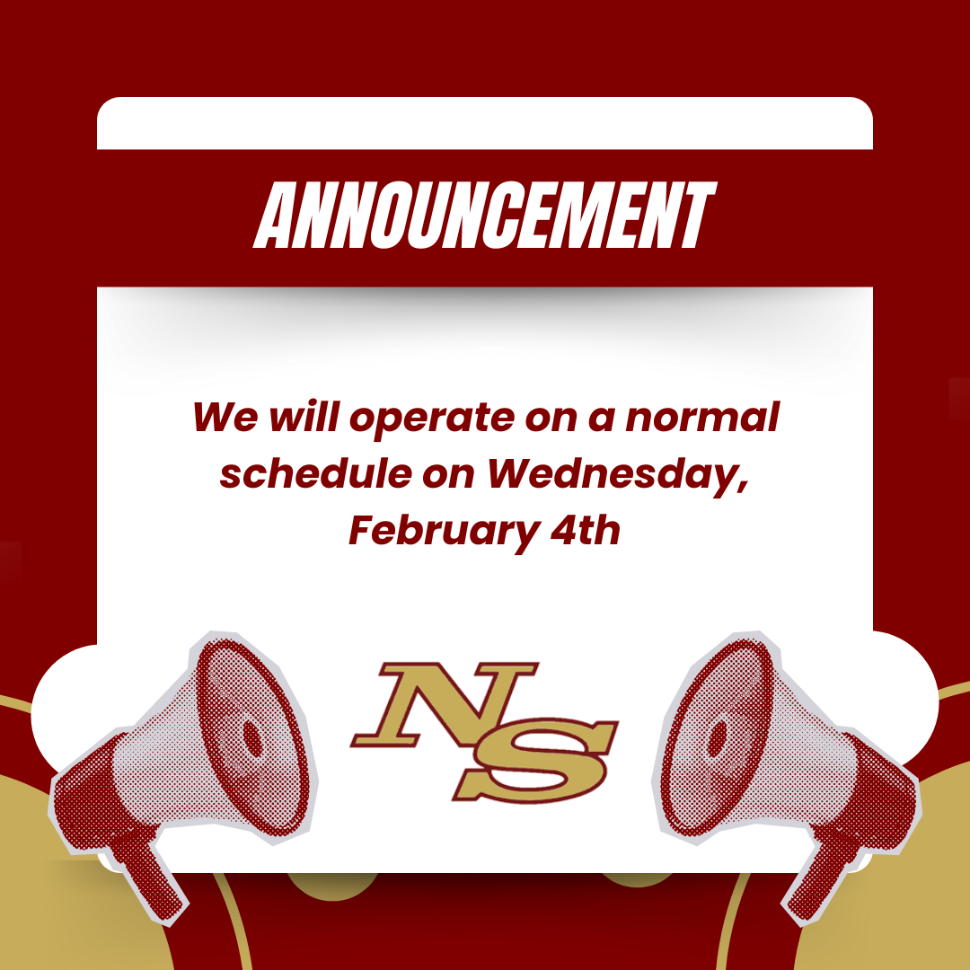 Greenwood School District 52 will return to a normal school and work schedule tomorrow, Wednesday, February 4, 2026.